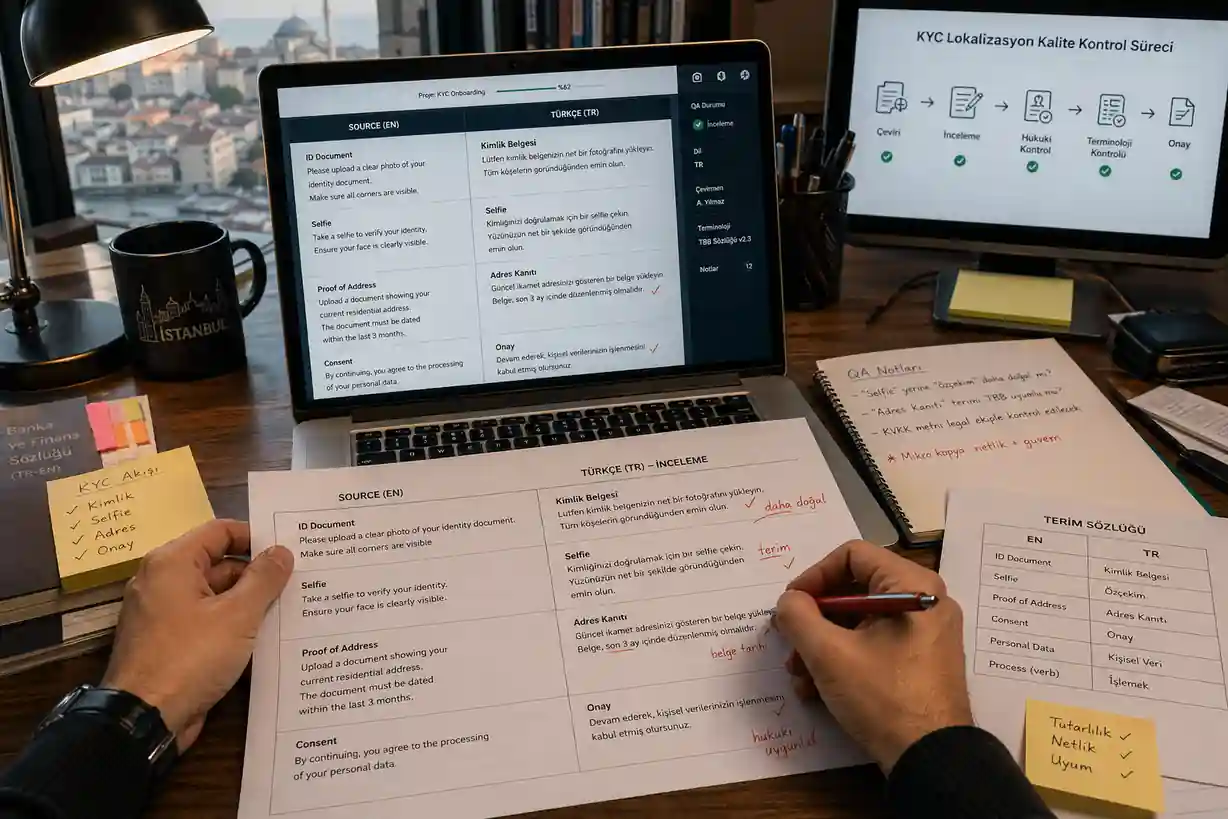 Terminology must also remain consistent across app screens, emails, help center articles, and legal documents. If one screen says “kimlik doğrulama” and another says “hesap onayı,” users may wonder whether the system is asking for the same thing.