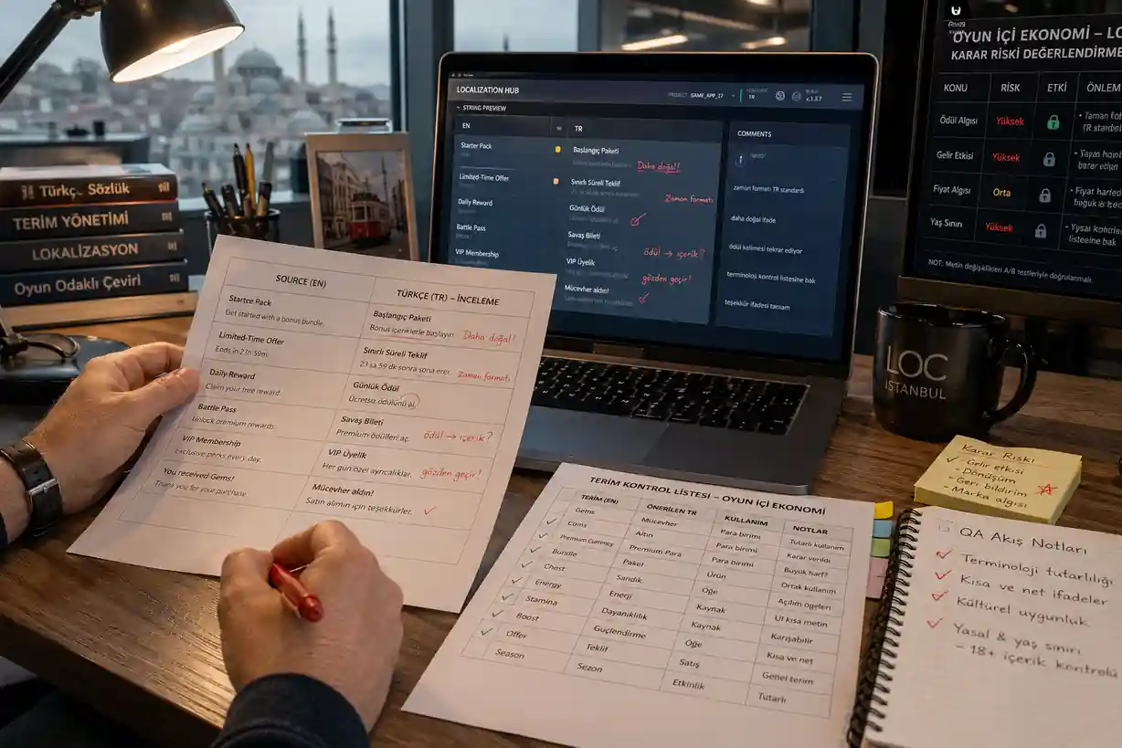 We review Turkish game monetization copy for reward clarity, purchase confidence, event urgency, and player trust.
