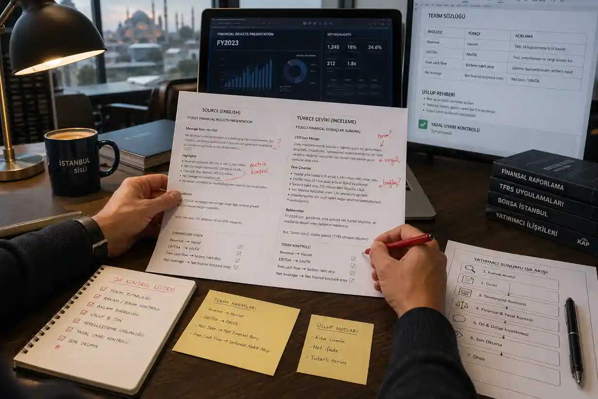 For investor content, the Turkish version must avoid two extremes. It cannot sound like a sales brochure. It also cannot sound like a legal filing if the source is meant to be an executive presentation.