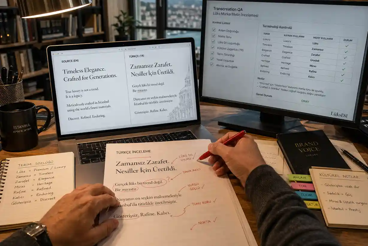 The goal is not to sound Turkish in a generic sense. The goal is to make the brand feel premium inside Turkish without losing its original authority. That requires the same discipline used in translation quality assurance, but applied to brand signal, rhythm, and cultural fit.
